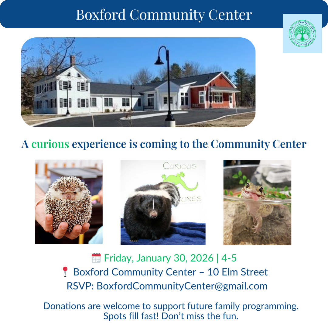 Here in Boxford we’ve always had a strong sense of community — we just needed a place to celebrate it! The Center at 10 Elm was built to provide a space for activities, programs and events for everyone!